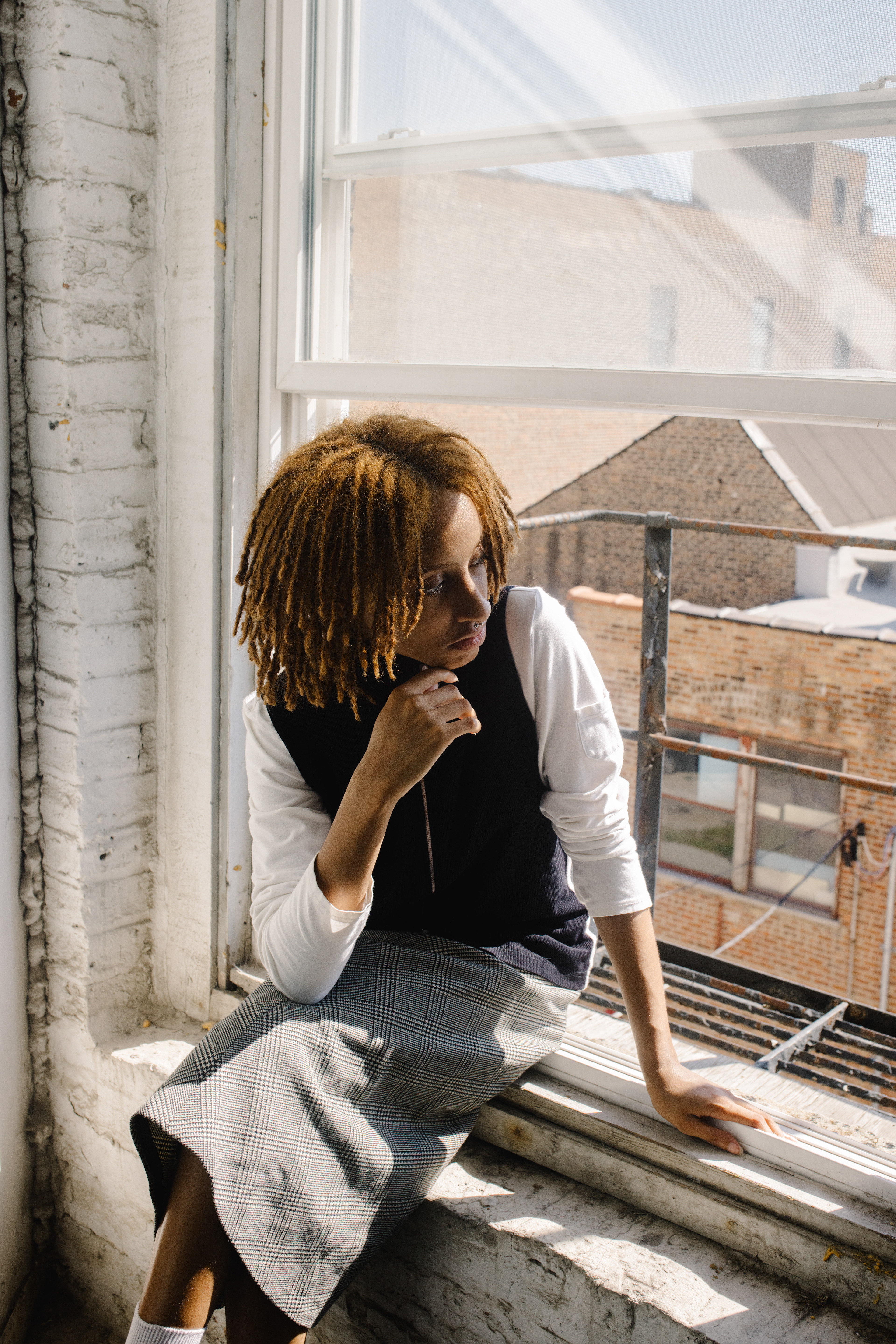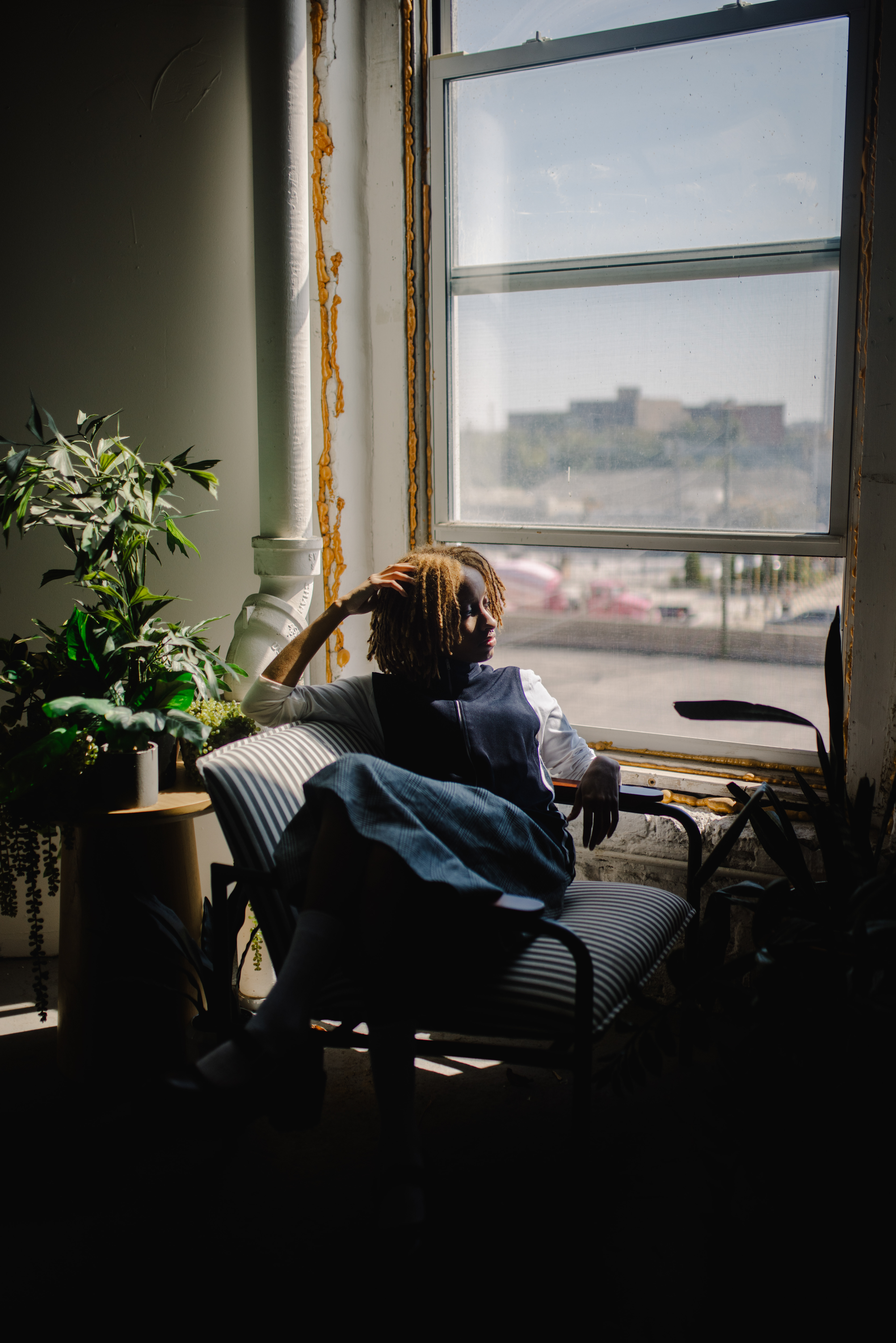 An exploration of vintage patterns and textures. Stripes on stripes, casual confidence, and concrete backdrops set the tone, weaving light and shadow through 80s favorites.