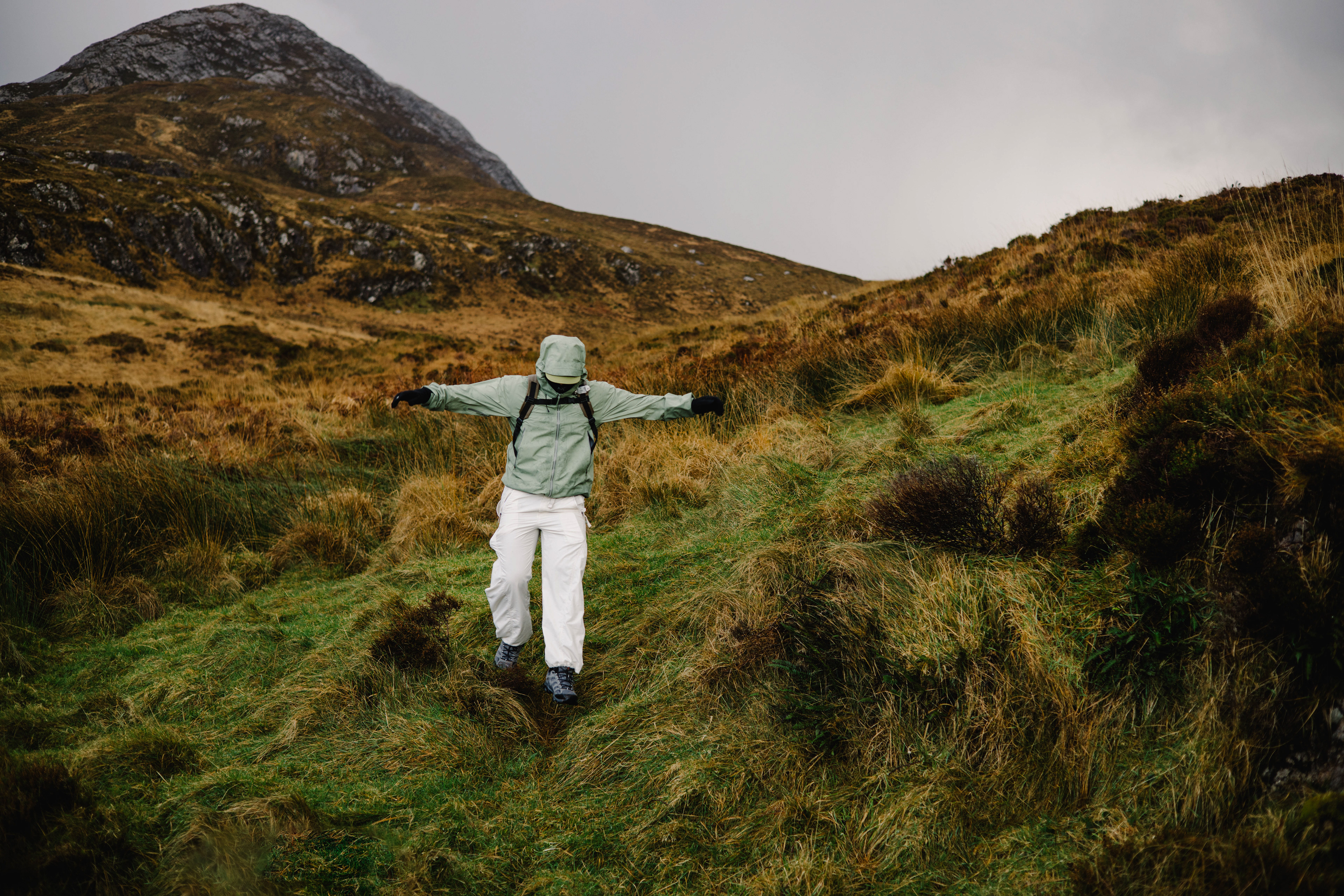 Photographed in Ireland’s wet terrain, emphasizing grip, movement, and durability through rain-soaked landscapes.